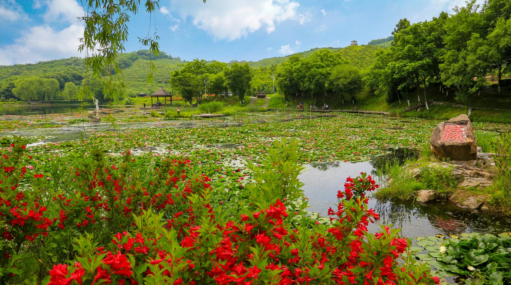 此處原為一泓山泉,2002年大梨樹村打算在這里舉辦賞秋蟠桃會(huì)。消息一出,山泉水量突然大增。人們戲說,是不是王母娘娘要來呀,于是人們在這里修筑水庫,取名小瑤池。岸邊聚仙亭是神仙聚會(huì)場所。