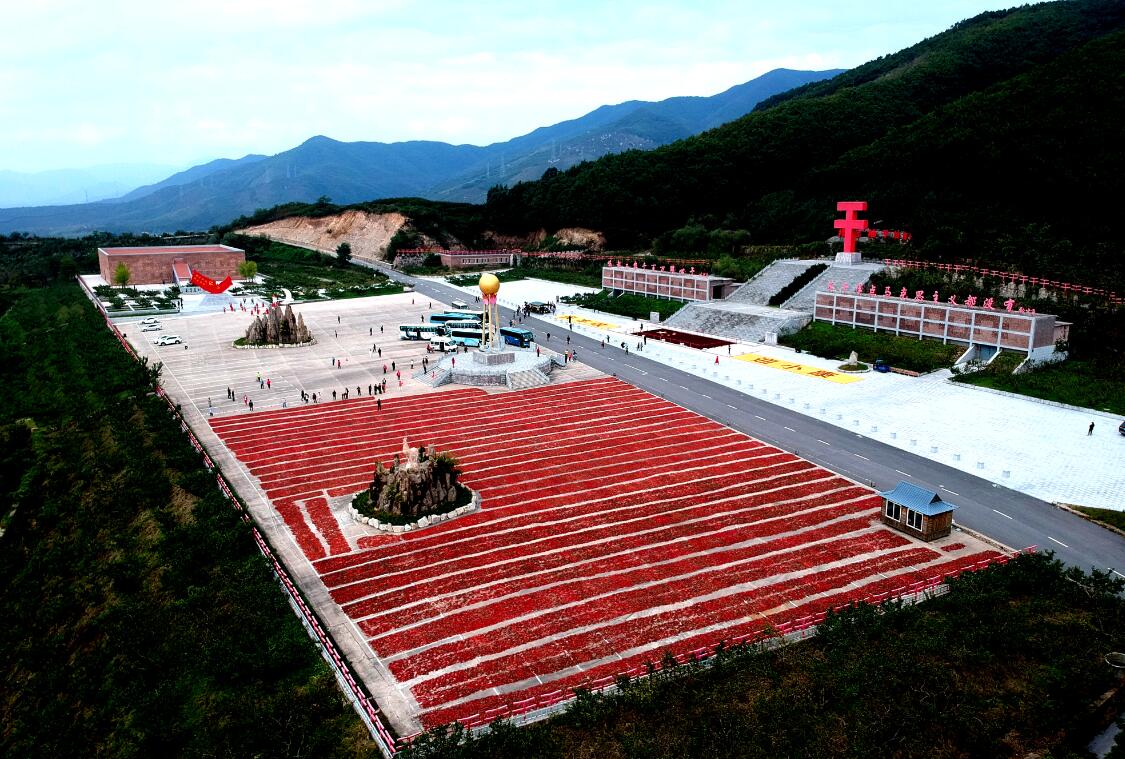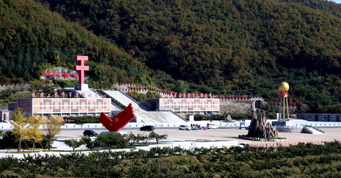 親愛的游客朋友們,我們現(xiàn)在到了干字文化廣場。廣場集旅游觀光、車輛停放、五味子晾曬、水果貯存多功能于一體。山腰上紅紅的巨大干字碑,高9.9米,寓意大梨樹子孫后代要長長久久地干,將苦干、實干、巧干的干字精神傳承下去,永不退色。干字文化廣場上修建了三座雕塑,分別為雞叫亮天干、頭頂烈日干、披星戴月干,象征著我們改造家鄉(xiāng)山川,不畏艱辛、敢于拼搏的干字精神。居于廣場中心的頭頂烈日干,上面鍬、鎬、錘支撐太陽部分,高9.9米,寓意人長長久久地干。