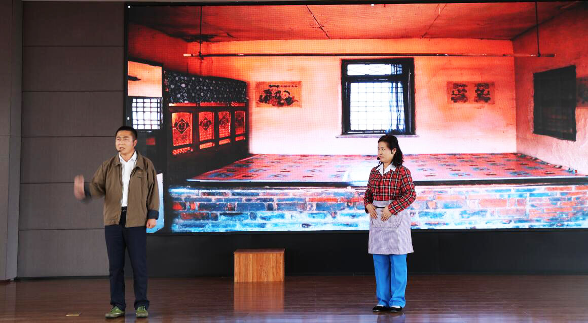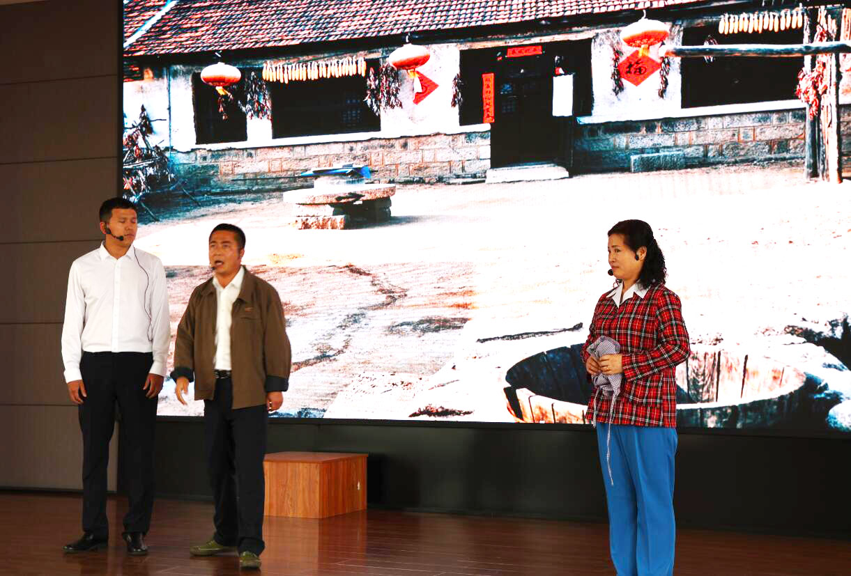 《干字豐碑》,以鮮活生動的情景再現(xiàn)了大梨樹村老書記毛豐美,30多年如一日,帶領鄉(xiāng)親發(fā)展經濟、改造荒山,直到生命最后一刻的感人事跡,演員們聲情并茂的表演把現(xiàn)場氣氛不斷推向高潮,淚目全場,贏得培訓學員的熱烈掌聲。