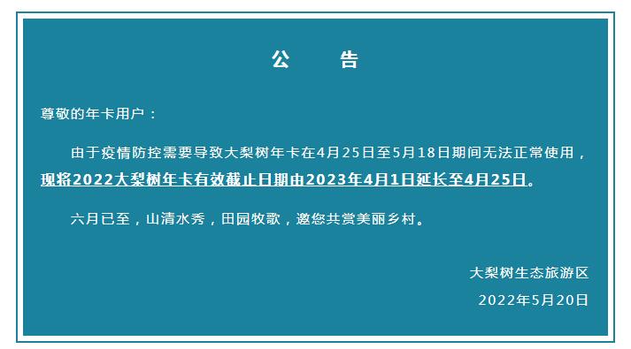 關(guān)于2022大梨樹(shù)年卡延期的公告