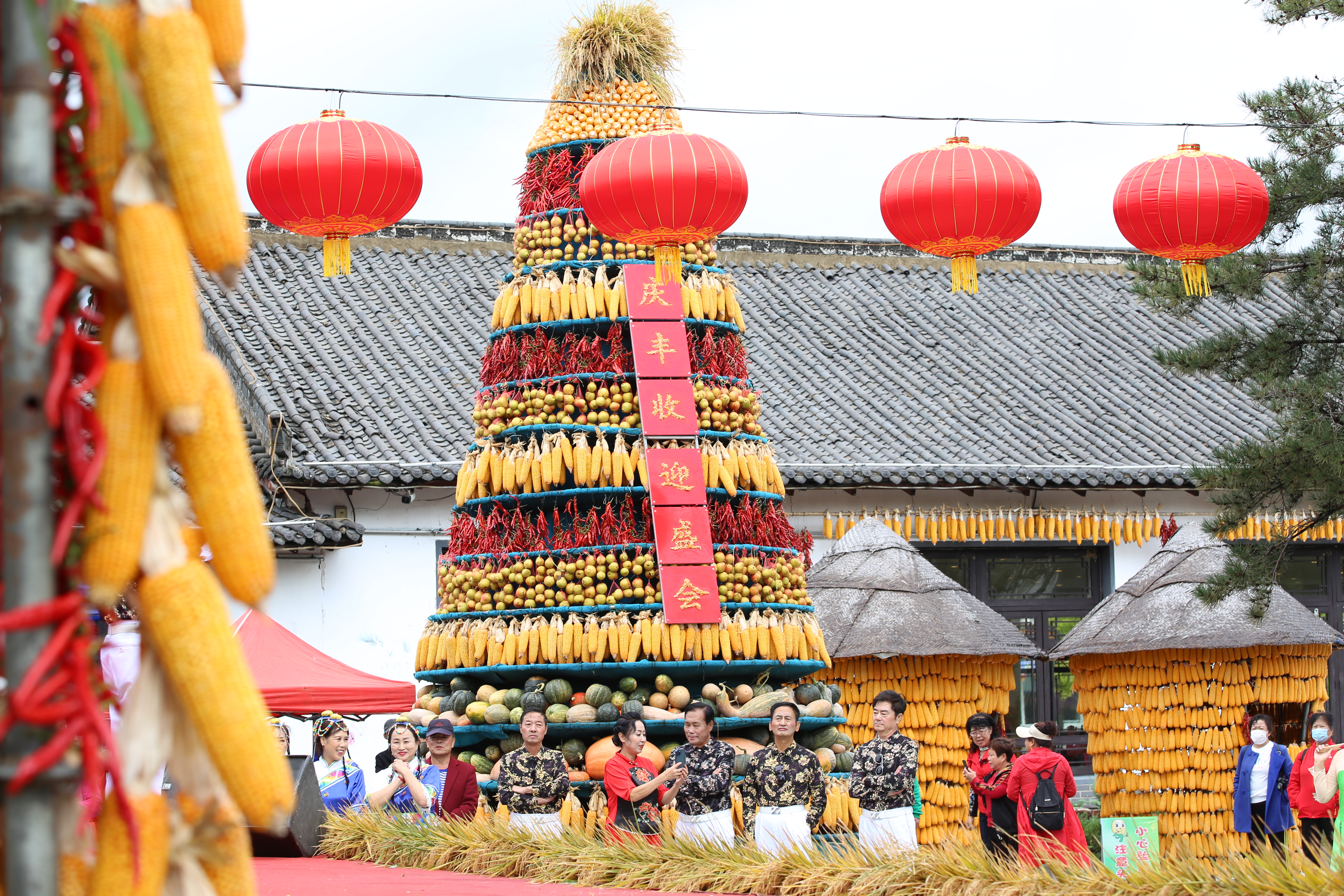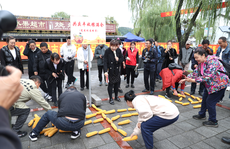 景區(qū)內(nèi)在干字廣場用近千盆鮮花擺出“慶豐收”字樣,曬出收獲,曬出美好,曬出幸福。同時,影視城大場院內(nèi)晾曬谷物、打場子、12生肖玉米墻、“豐收號”火箭等農(nóng)耕文化景觀,也吸引了眾多游客拍照合影。