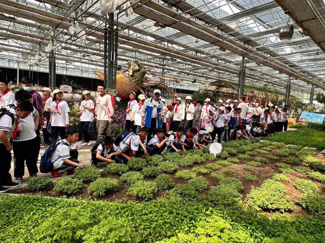 5月11日下午,賽馬鎮(zhèn)中心小學(xué)的近千名師生一路歡聲笑語地走進(jìn)大梨樹七彩田園。1.2萬平方米的七彩田園現(xiàn)代農(nóng)業(yè)示范展示館是大梨樹科普教育的主陣地。2022年,大梨樹村入選2022年度全國科普教育基地培育計劃(三農(nóng)類)。在這里,小朋友們可以透過溫暖如春、瓜果飄香的生態(tài)景觀了解到無土栽培、一株多果等現(xiàn)代立體化農(nóng)業(yè)種植模式和技術(shù),讓學(xué)生們多樣化、多渠道、多方面攝取知識,讓“知識”變得更充滿了“煙火氣”,變得可以觸摸、可以感覺。